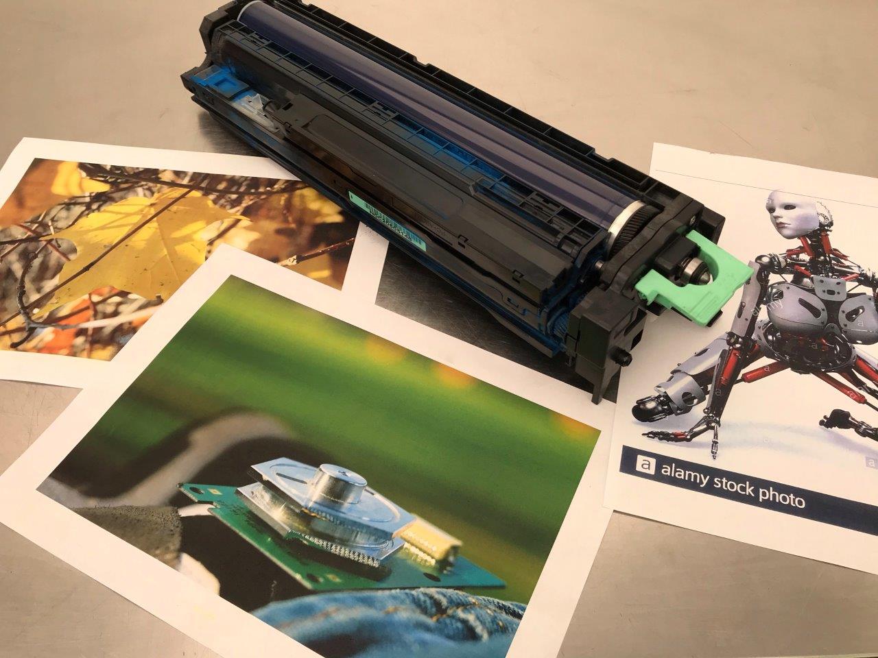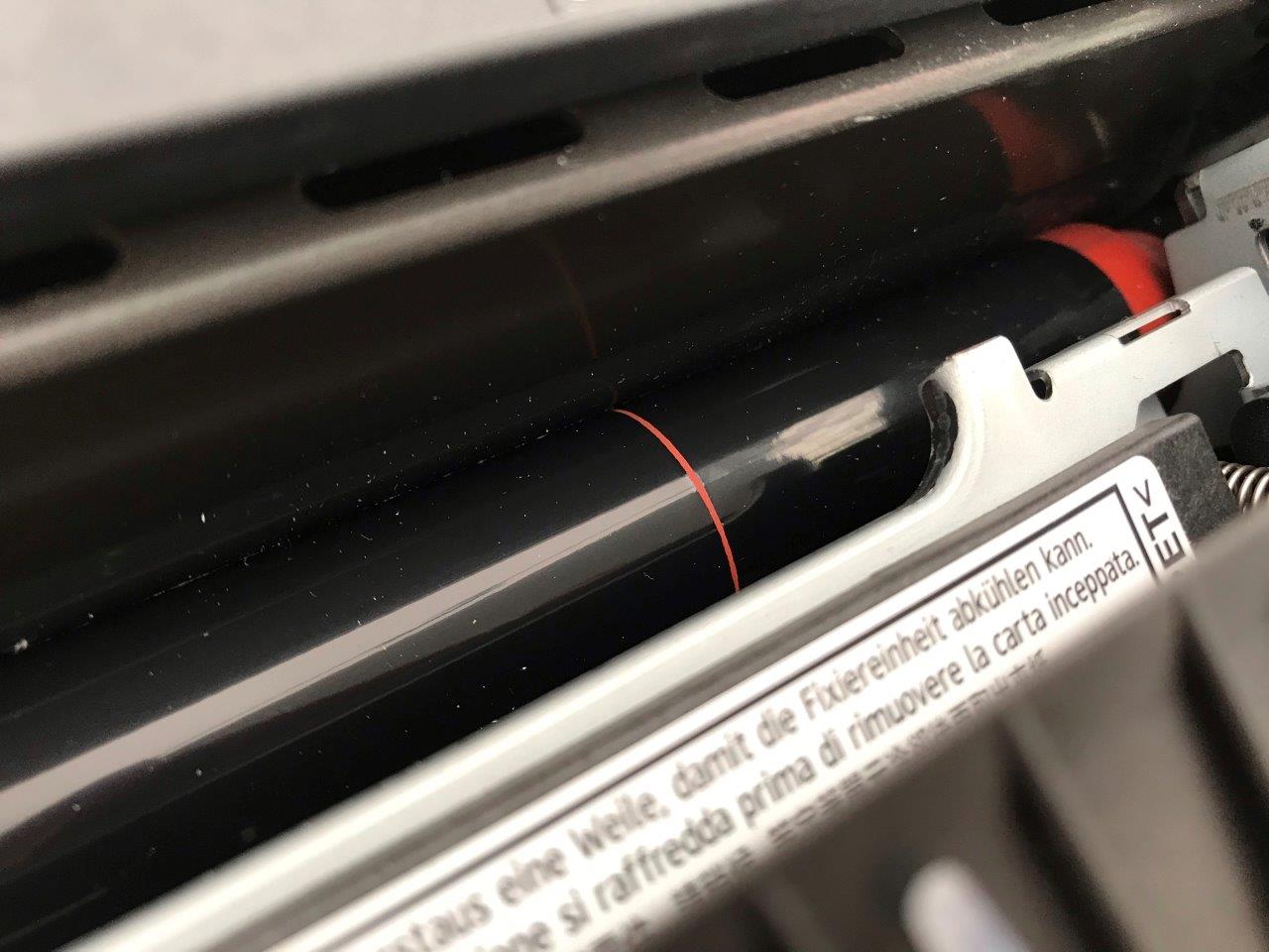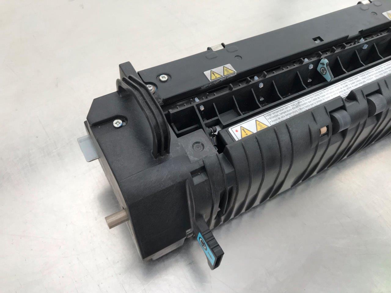 Element używany na czarnym wałku jest z boku przetarcie widoczne na zdjęciu. Test z dnia 28.03.2018 wykazał, że moduł pracuje cicho, nie generuje kodów sc, wydruki załączone na 3 ostatnich zdjęciach. W najbliższym czasie konieczność wymiany folii grzejnej.